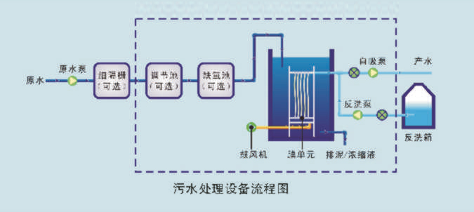 污水處理設(shè)備是由本體、曝氣系統(tǒng)、反硝化系統(tǒng)、MBR膜過濾系統(tǒng)、紫外消毒系統(tǒng)、PLC自控系統(tǒng)及生物載體組成。